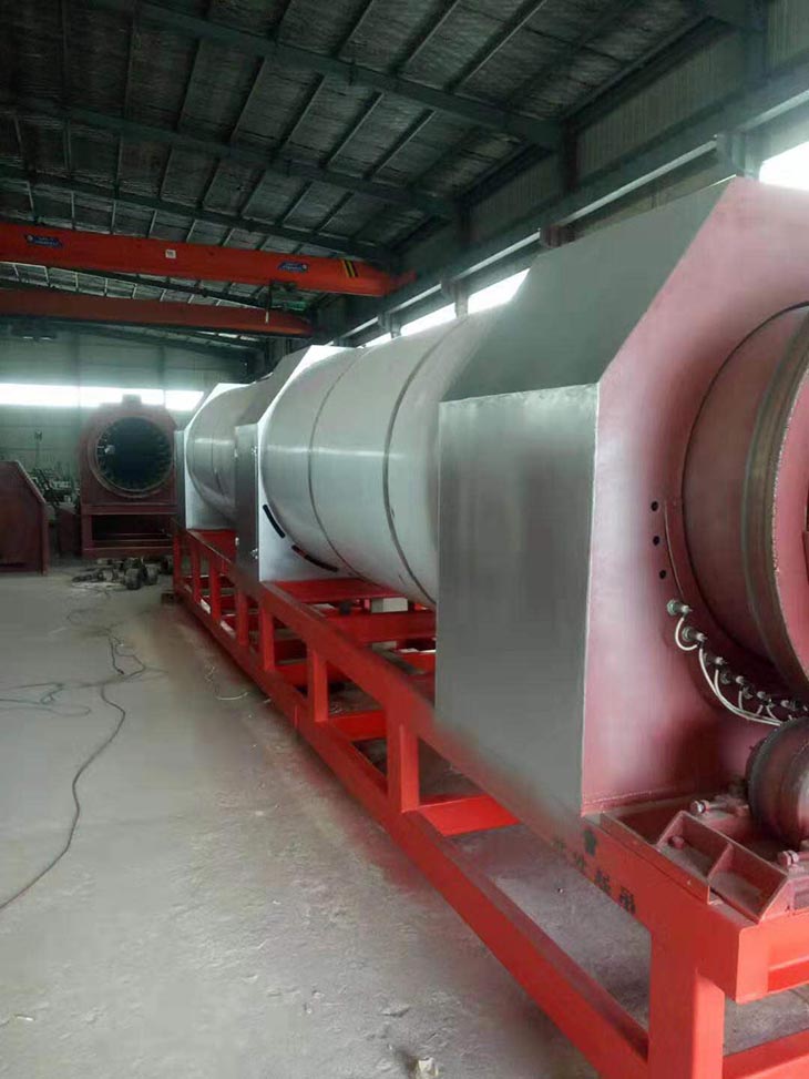 我們解決其技術(shù)問(wèn)題所采用的技術(shù)方案是:一種新型環(huán)保節(jié)能熱風(fēng)炒爐,由電源供電,包括第一燃燒室、第二燃燒室、熱風(fēng)炒爐滾筒、存料機(jī)、自動(dòng)喂料器、出料機(jī)、引風(fēng)機(jī)和排潮風(fēng)機(jī),所述熱風(fēng)炒爐滾筒的入口端通過(guò)自動(dòng)喂料器與所述存料斗連通,所述熱風(fēng)炒爐滾筒的入口端還通過(guò)風(fēng)道與所述排潮風(fēng)機(jī)連通,所述熱風(fēng)炒爐滾筒的出口端與出料機(jī)連通,所述第一燃燒室和第二燃燒室通過(guò)風(fēng)道與引風(fēng)機(jī)連通,所述第一燃燒室和第二燃燒室分別位于所述熱風(fēng)炒爐滾筒的下方,所述熱風(fēng)炒爐滾筒軸心線與水平面形成2°到8°的夾角,所述第一燃燒器和第二燃燒器安裝位置在相應(yīng)燃燒室的前端或者相應(yīng)燃燒室的兩個(gè)側(cè)面。我們?cè)O(shè)備取消了原熱風(fēng)炒爐所配套的單獨(dú)熱風(fēng)爐、彎段風(fēng)道或直段風(fēng)道;在炒爐滾筒下方設(shè)計(jì)安裝兩份熱風(fēng)燃燒室,用燃燒器產(chǎn)生的熱風(fēng)直接對(duì)滾筒進(jìn)行加熱,最大限度地縮減了炒爐散熱環(huán)節(jié)和面積,從而實(shí)現(xiàn)炒爐連段式加熱。與現(xiàn)有設(shè)備相比,我們公司設(shè)備充分利用了熱風(fēng)釋放的熱量,減少了熱量損失,單噸油料或糧食加工消耗添人氣甚至能降低到25nm3,降低了17%,節(jié)能降耗效果非常明顯,得到了客戶的一致好評(píng)。與現(xiàn)有設(shè)備相比,同等日加工量,所配兩臺(tái)燃燒器合計(jì)功率比現(xiàn)有設(shè)備燃燒器功率下降20%-30%,熱風(fēng)設(shè)定溫度有750-800℃下降到400-500℃,明顯延長(zhǎng)了炒爐的使用壽命。第一燃燒室和第二燃燒室的功能各不相同,工作溫度也不一致,第一燃燒室和第二燃燒室能夠?qū)崿F(xiàn)分段加熱溫度控制,更加靈活與合理,安全可靠,便于操作與控制。